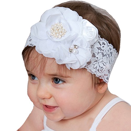 miugleベビーガールズレースヘッドバンド花で、ホワイト、14?" Girth