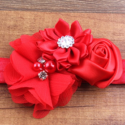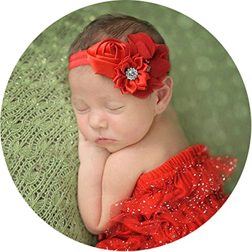miugle赤ちゃん伸縮性ヘッドバンド花で、レッド、14?" Girth