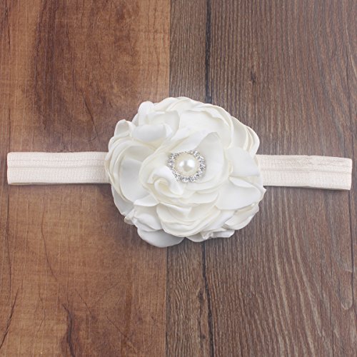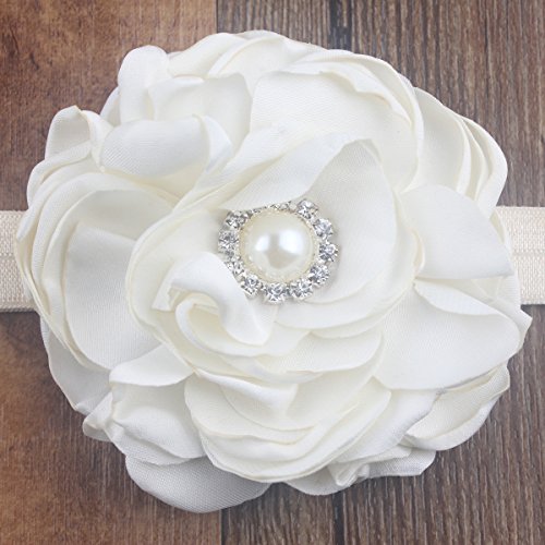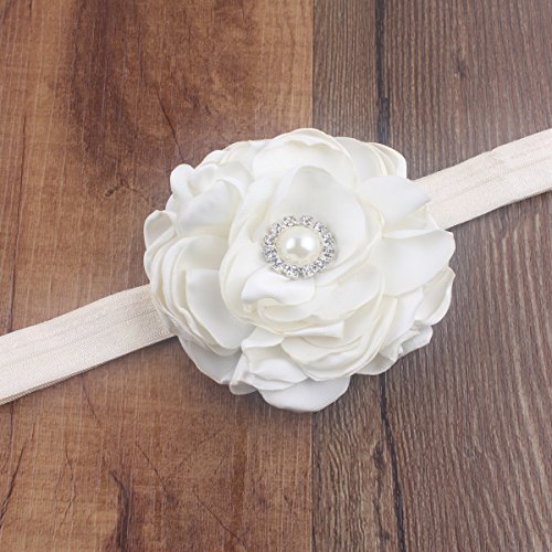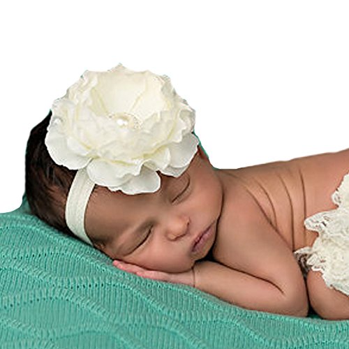 miugle新生児赤ちゃんElsticヘッドバンド花で、アイボリー、14?" Girth