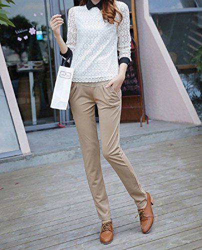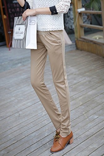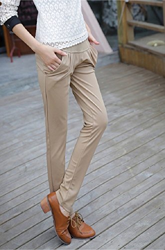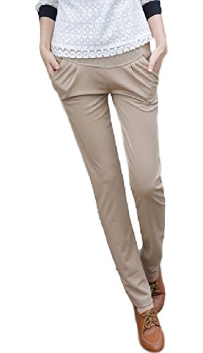 ミウォルナ(Miwoluna) マタニティ パンツ ウエスト調整可能 ストレッチ 綺麗なシルエット ベージュ M