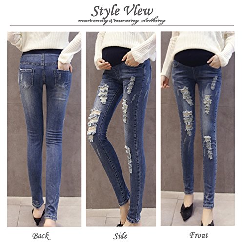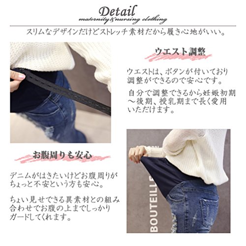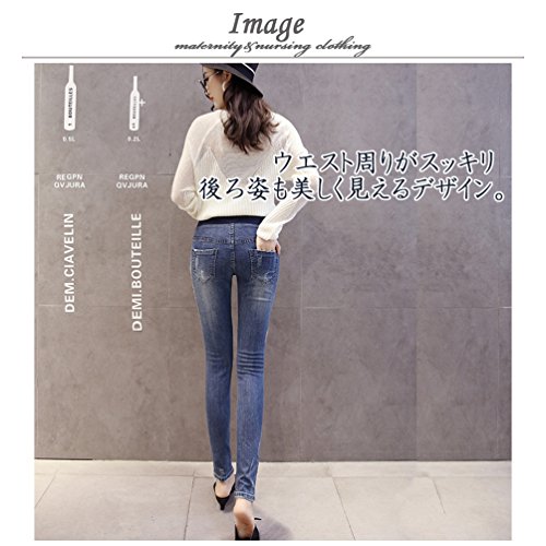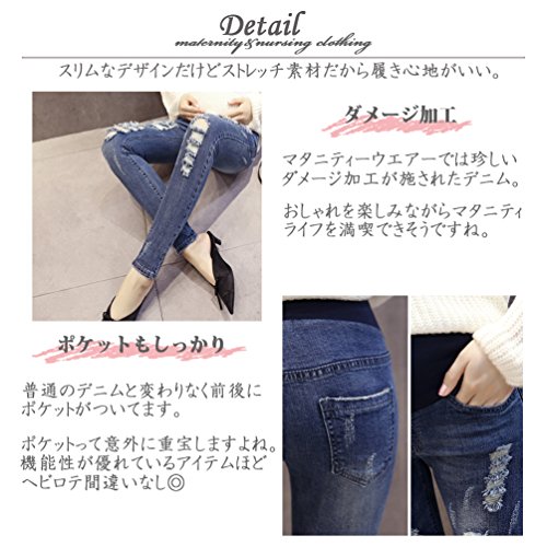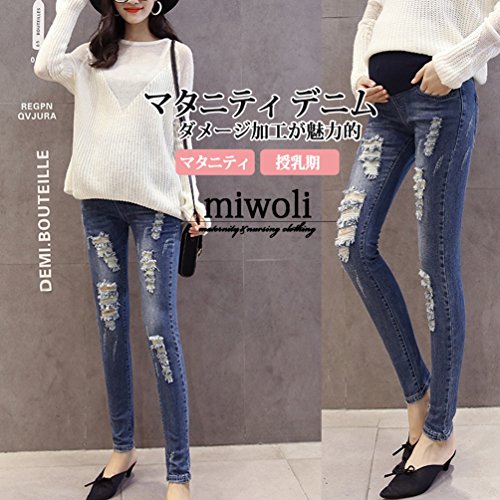 ミウォルナ マタニティ 妊婦 ジーンズ デニム パンツ ストレッチ ダメージ ジーパン スキニー 産前産後 ウエストサイズ調整 XL