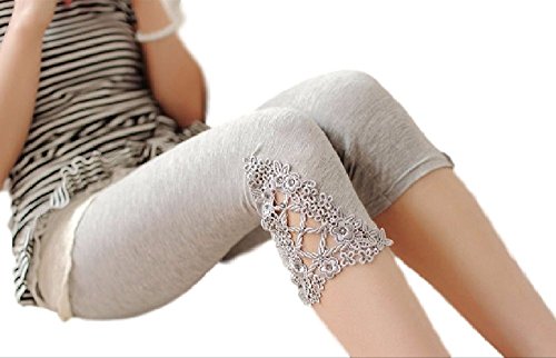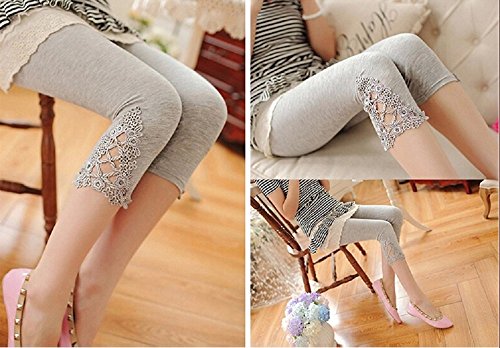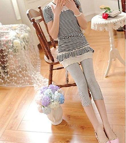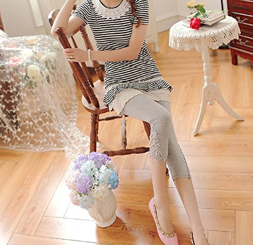 (Miwoluna) マタニティ レギンス ストレッチ素材 ラインストーン レースデザイン 9分丈 7分丈 ブラック ホワイト グレー スパッツ (7分丈M, ライトグレー)