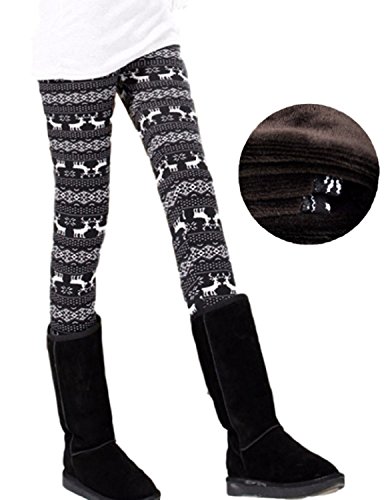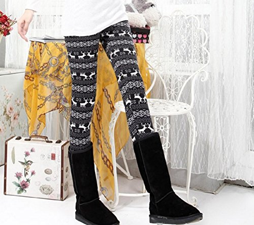 (Miwoluna) マタニティ レギンス パンツ ストレッチ 裏起毛 ウエストゴム調整 (L, トナカイ)