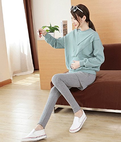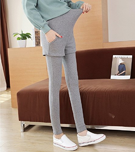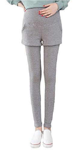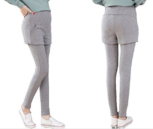 (Miwoluna) マタニティ レギンス ショートパンツ付き ウエスト調整 ストレッチ (L, ライトグレー)
