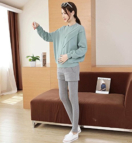 (Miwoluna) マタニティ レギンス スパッツ タイツ ショートパンツ付き ウエスト調整 ストレッチ (M, ライトグレー)