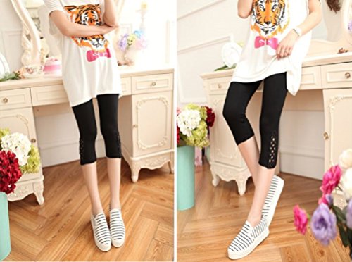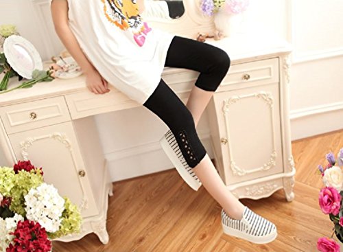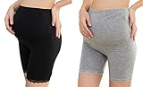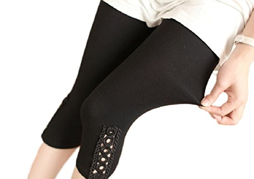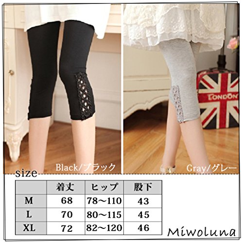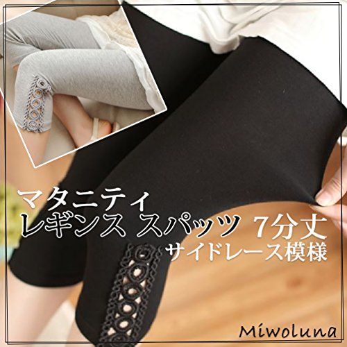 (Miwoluna) マタニティ レギンス スパッツ 7分丈 産前産後 ストレッチ ウエスト調整 サイドレース ショート 夏 夏用 七分 リブ グレー 綿 ショート 大きいサイズ 7分 7分丈 涼感 春夏 大きい レース ブラック M
