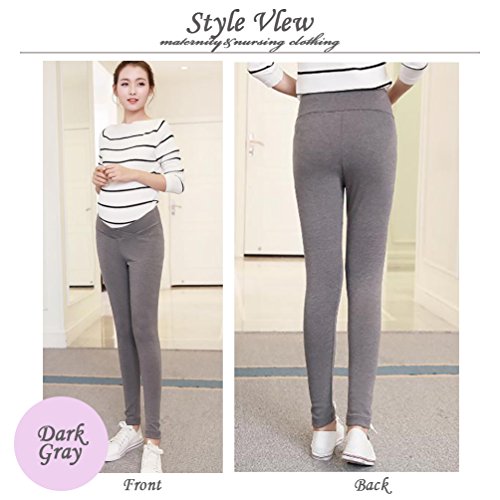 (Miwoluna) マタニティ レギンス スパッツ タイツ 9分丈 V字 ストレッチ 締め付けない 産前産後 リブ ショート 夏 夏用 リブ グレー 綿 ショート 大きいサイズ 涼感 春夏 大きい レース ダークグレー M