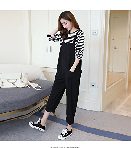 - ✅ボーダー柄でかわいいデザイン。 サロペットもブラックなので細身のシルエットです。 ✅足元の裾をくるくる丸めて10分丈~好みの長さにロールアップして調整出来るから重宝する事間違いなし。