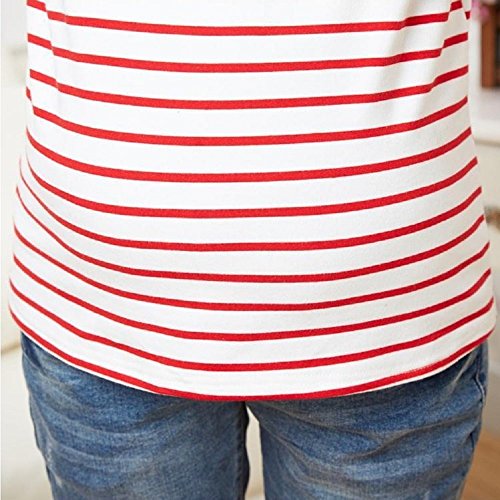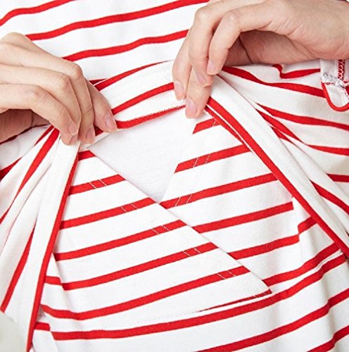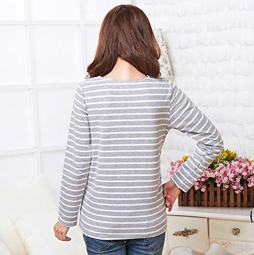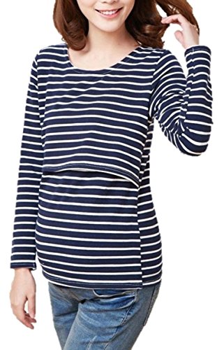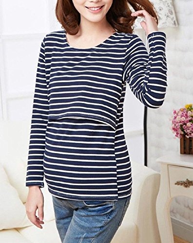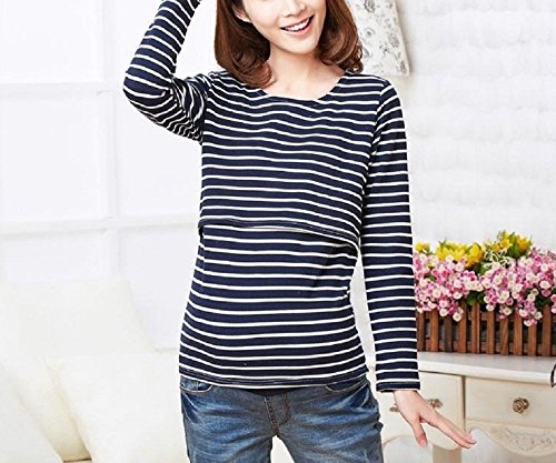 (Miwoluna) マタニティ 授乳服 長袖 トップス シャツ ボーダー ネイビー M
