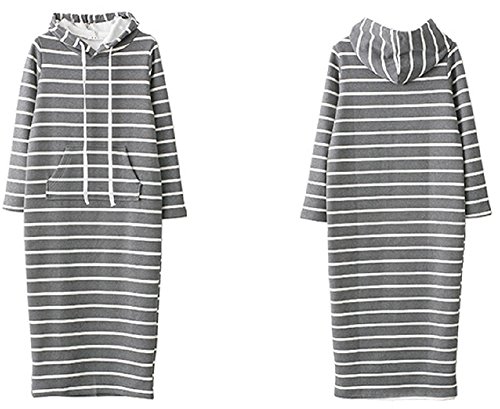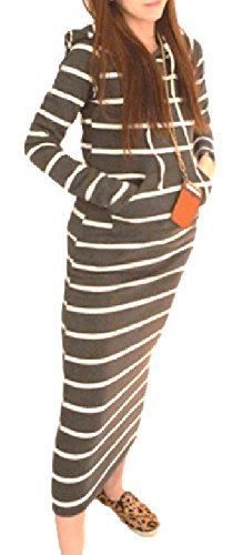 (Miwoluna) マタニティ ロング ワンピース 裏起毛 ボーダー ルームウェア M