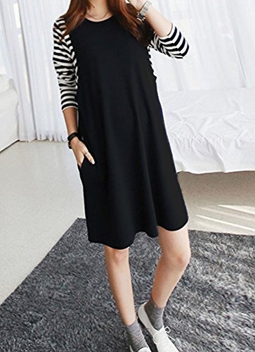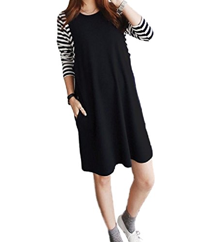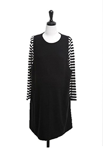 (ミウォルナ) Miwoluna マタニティ ワンピース 授乳口あり ボーダー 長袖 フリーサイズ (ブラック)