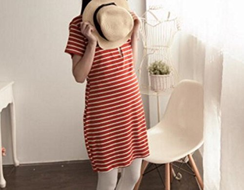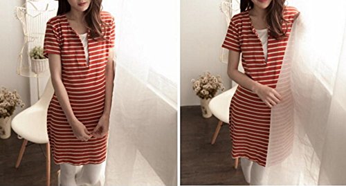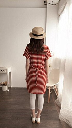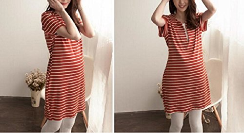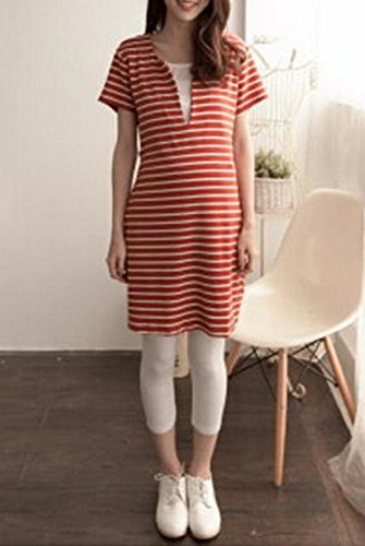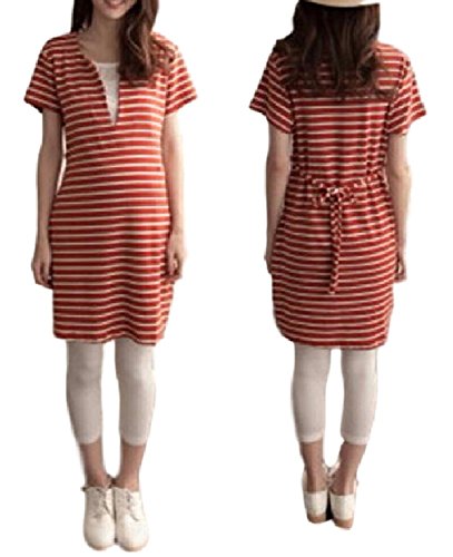 Miwoluna マタニティ ワンピース チュニック 授乳口 ボーダー ウエスト調整可能 (L, オレンジ x ホワイト)