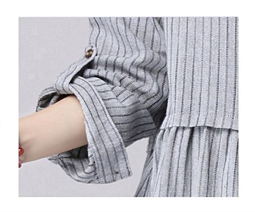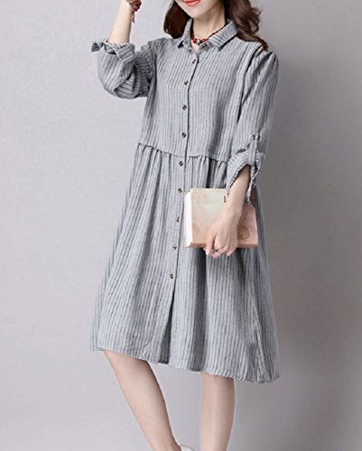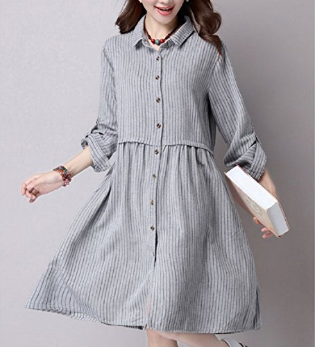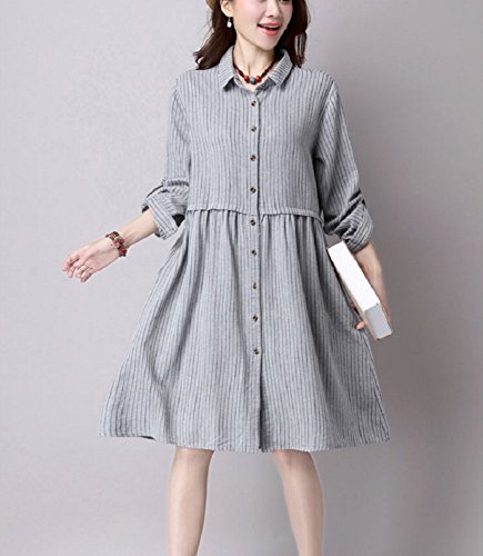 (Miwoluna) マタニティ シャツ ワンピース シャツワンピ 前ボタン グレー (L)