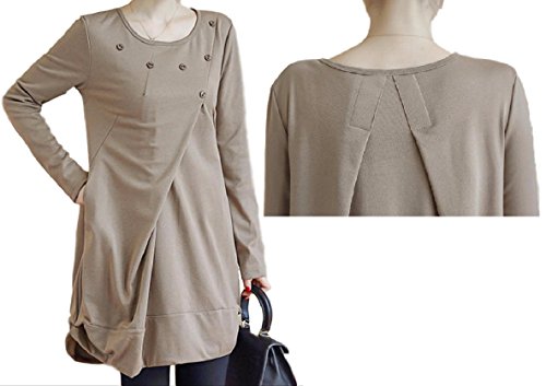 - 胸元にボタンのアクセント ギャザーが特徴的で、マタニティウェアとは思えないデザインです