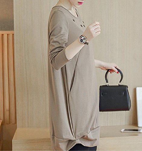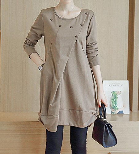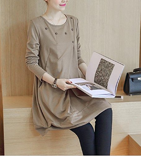 (Miwoluna) マタニティ ワンピース プルオーバー 長袖 ギャザー カジュアル (XL)
