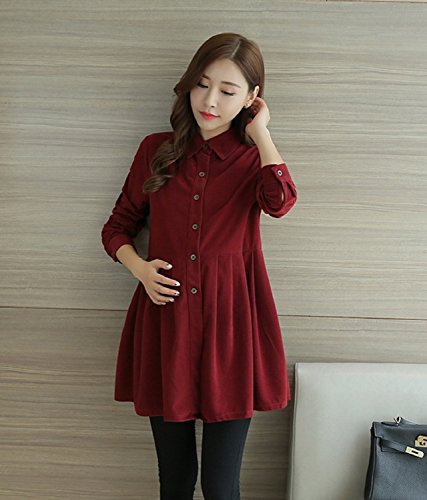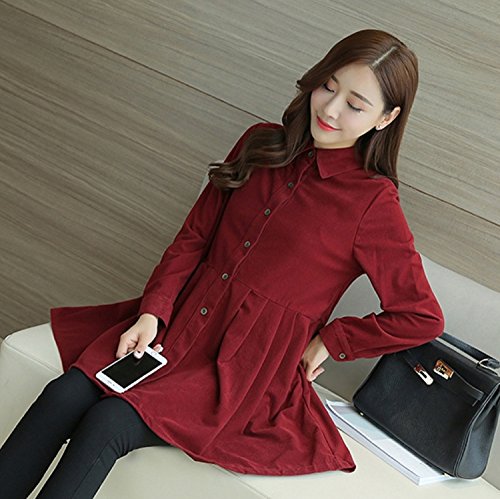 (Miwoluna) マタニティ チュニック ワンピース コーディロイ 長袖 前開き レッド S