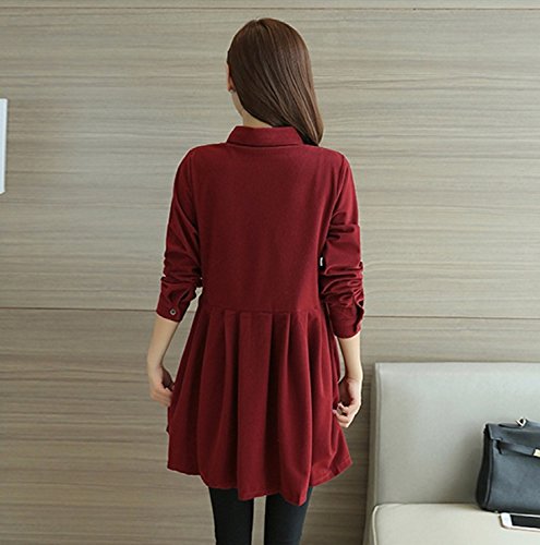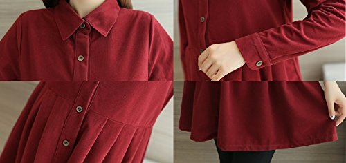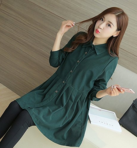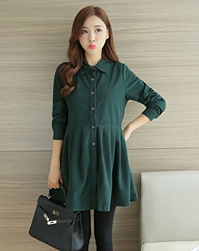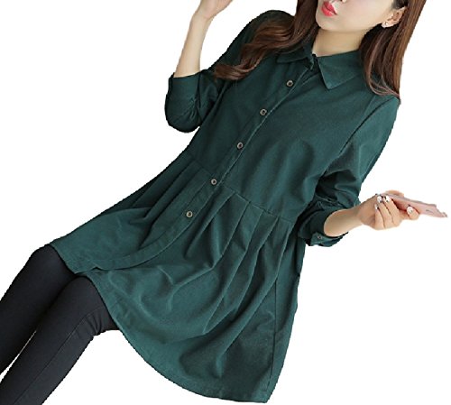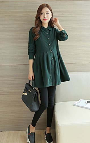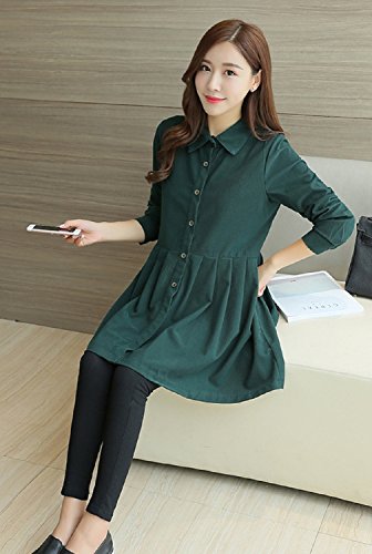 ( Miwoluna) マタニティ チュニック ワンピース コーディロイ 長袖 前ボタン 各色 (S, グリーン)