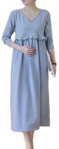 - 授乳口付きの長袖 マタニティ ロングワンピース。 ロング丈で体型カバーします。
