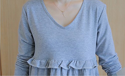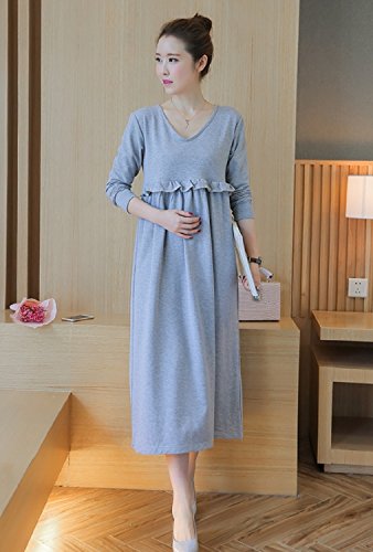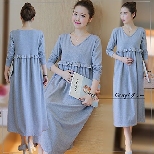 (ミウォルナ) マタニティ 授乳服 ロング ワンピース 長袖 授乳口付き 胸フリル グレー XL