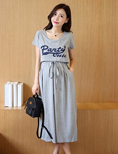 ミウォルナ マタニティ ワンピース 授乳服 授乳口 ロング マキシ 丈 半袖 ウエスト調整 グレー L