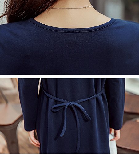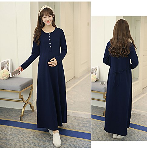 ミウォルナ マタニティ ワンピース 授乳服 授乳口 マタニティウェア マキシ丈 ロング 長袖 前ボタン ネイビー L