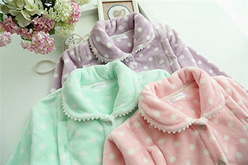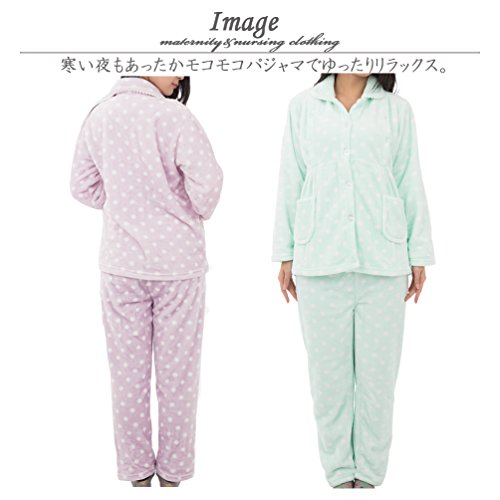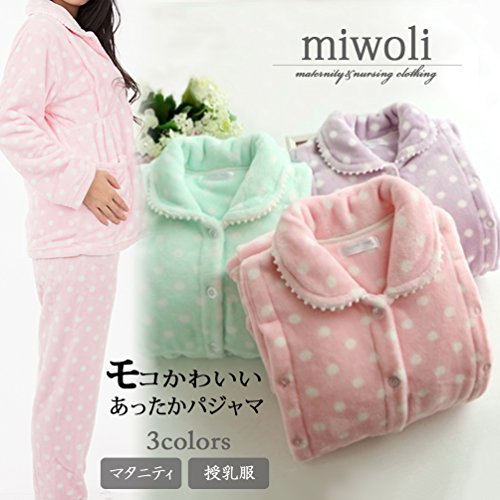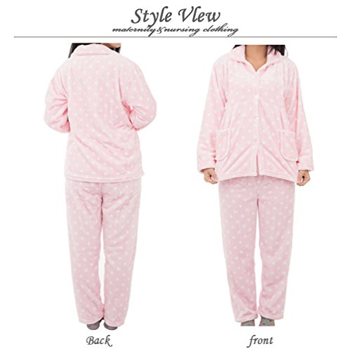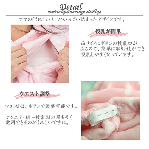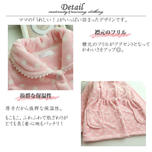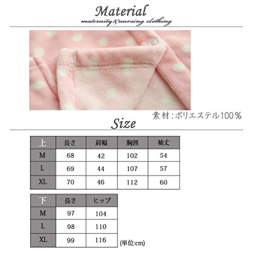 (Miwoluna) マタニティ パジャマ ルームウェア 授乳服 もこもこ かわいい ウエストサイズ調整可能 前開き 柔らかい 暖かい ドット 水玉 (L, ピンク)