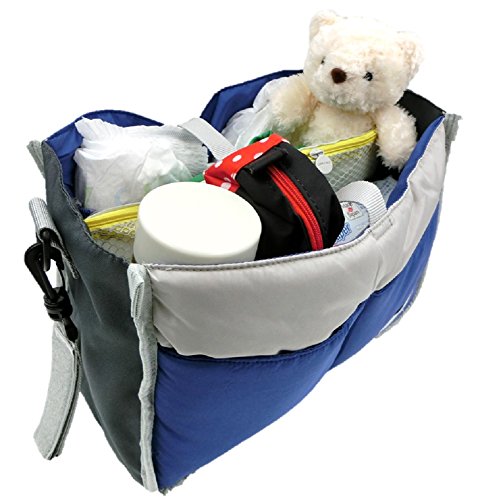 (ミウォルナ) Miwoluna ベビーカーポーチ バッグインバッグ 車の後部座席 でも使用できる 3way フック付き ブルー