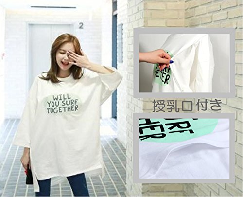 マタニティ チュニック ロング ティー T シャツ 半袖 ルームウェア パジャマ 七分袖 授乳口 付 (M)
