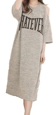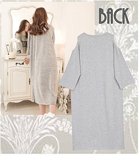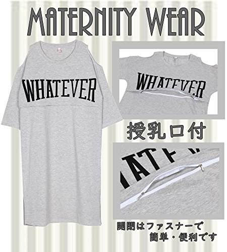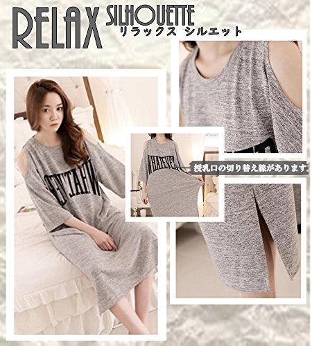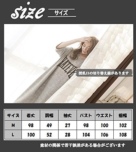 マタニティ チュニック ロング T シャツ ワンピース ルームウェア パジャマ 七分袖 授乳口 付 (グレイ, L)