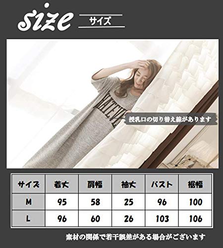 マタニティ チュニック ロング T シャツ ワンピース ルームウェア パジャマ 七分袖 授乳口 付 (グレイ, M)