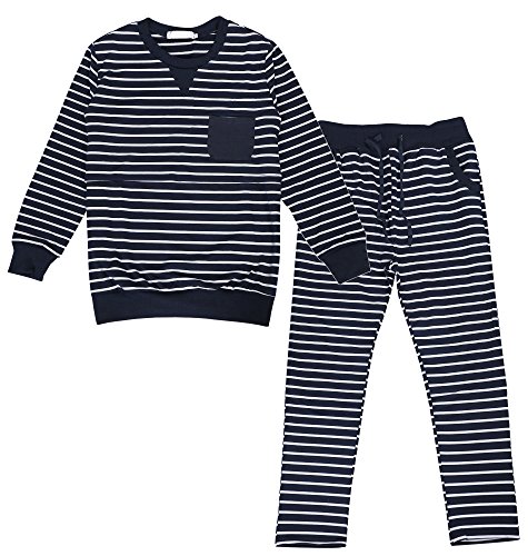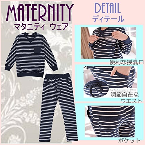 くつろぎ マタニティ ウェア 妊婦 服 パジャマ トレーナー スエット パンツ 長袖 授乳口 つき (L, ネイビー)