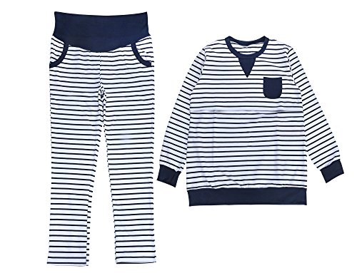 - トップス には 授乳用 の 切り返しがついています。 ボトムス の ウエスト は ゴム で 調整 でき ウエストサイズ を 調整 できるように なっています。