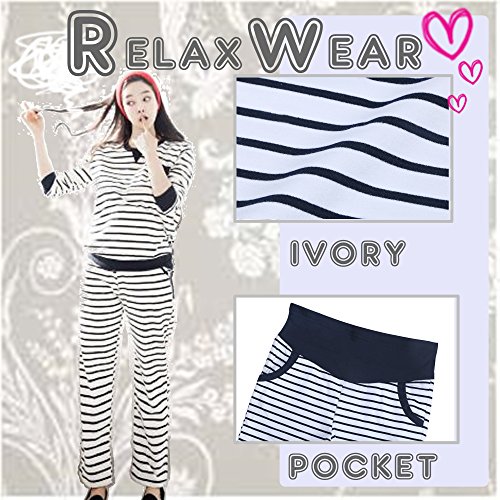 くつろぎ マタニティ ウェア 妊婦 服 パジャマ トレーナー スエット パンツ 長袖 授乳口 つき (M, アイボリー)
