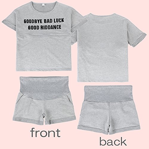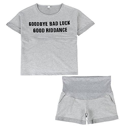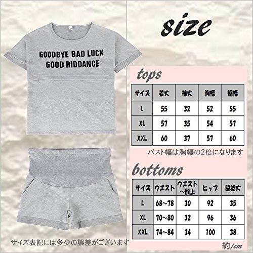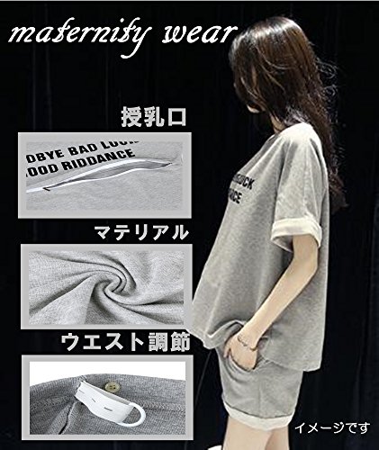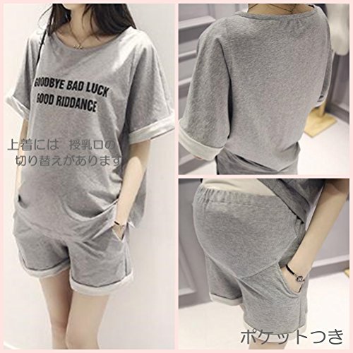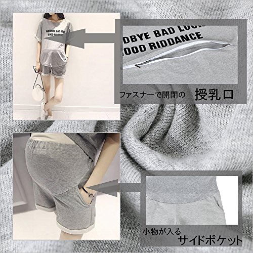 マタニティ スウェット セット アップ 半袖 半ズボン ルームウェア ハーフ パンツ 授乳口 付 スエット (L)