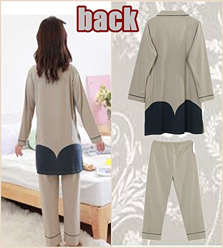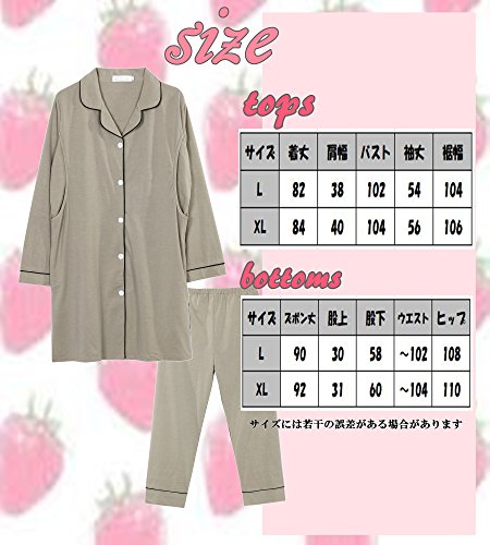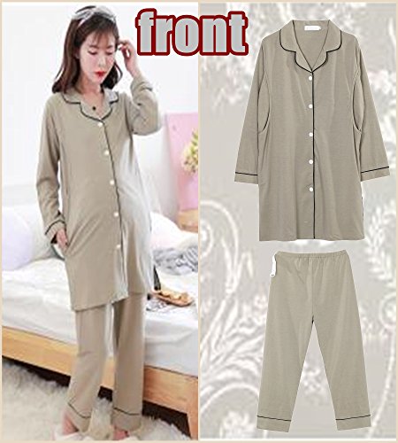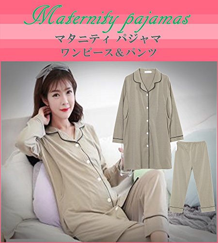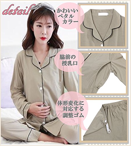 マタニティ パジャマ 前開き 授乳服 ロング 丈 ワンピース 長袖 長ズボン セットアップ 授乳口 付 (XL)