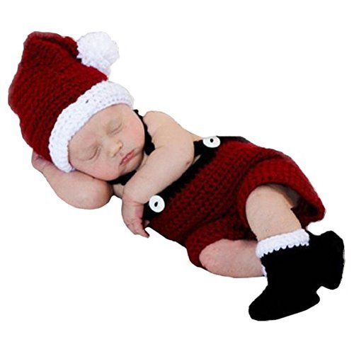 Soft Crochet Knit Baby Photograph Props,cute Baby Xmas Outfits,hat + Cloth + Shoes,(santa Claus) by Mixmax