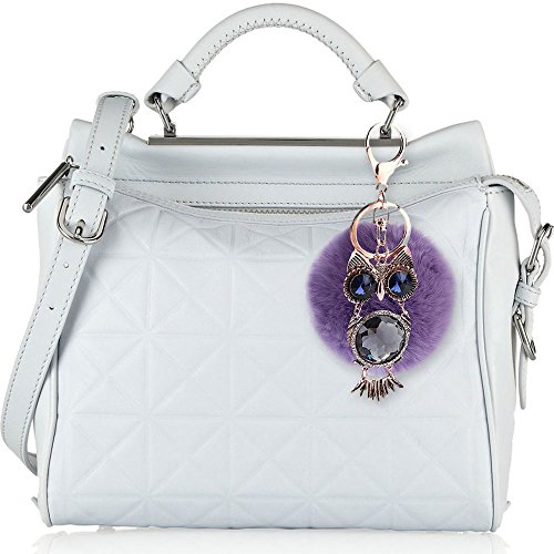 女性ファッション小物 ハンドバッグペンダント 合金のフクロウの人造毛皮の ふわふわのポンポンボールキーホルダー キーリング ライト紫