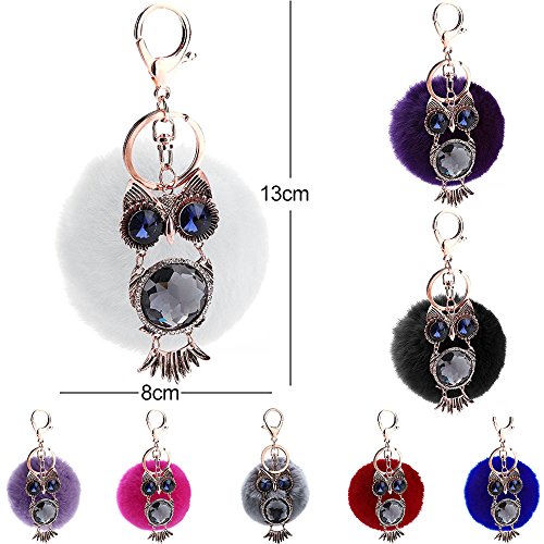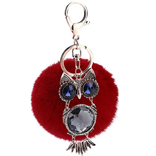 女性ファッション小物 ハンドバッグペンダント 合金のフクロウの人造毛皮の ふわふわのポンポンボールキーホルダー キーリング レッド