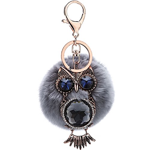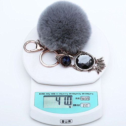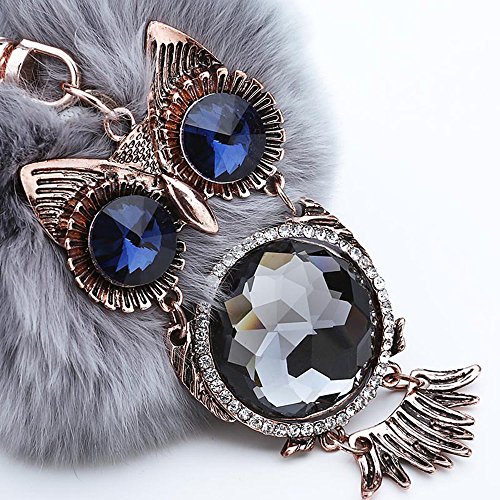 女性ファッション小物 ハンドバッグペンダント 合金のフクロウの人造毛皮の ふわふわのポンポンボールキーホルダー キーリング グレー