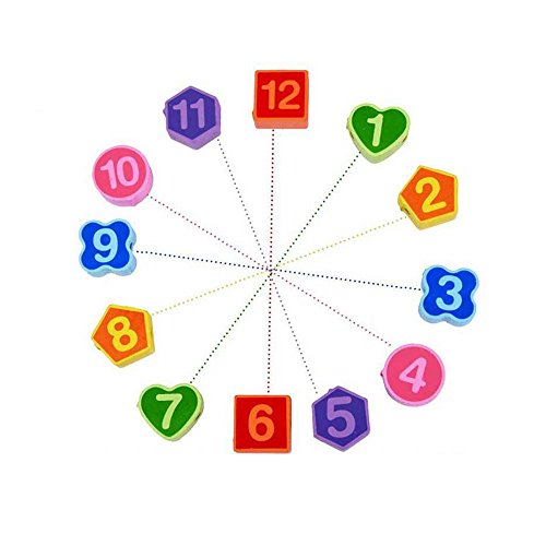 カラフルな木製時計には12個の取り外し可能なピースがあります。時計の各数字を構成するピースはしっかりしており、しっかりと保持できます。時間を知っている、デジタル知識教育、多くのファン