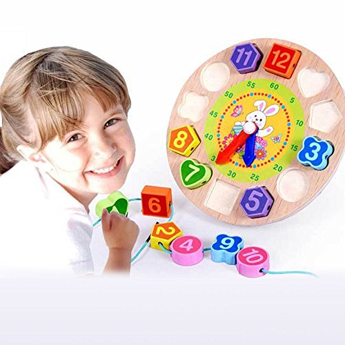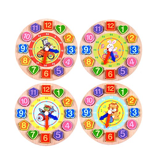 木製 12数字 カラフルなパズルデジタル 幾何学時計 赤ちゃん教育的なレンガ 赤ちゃんおもちゃ 出産ギフト 虎