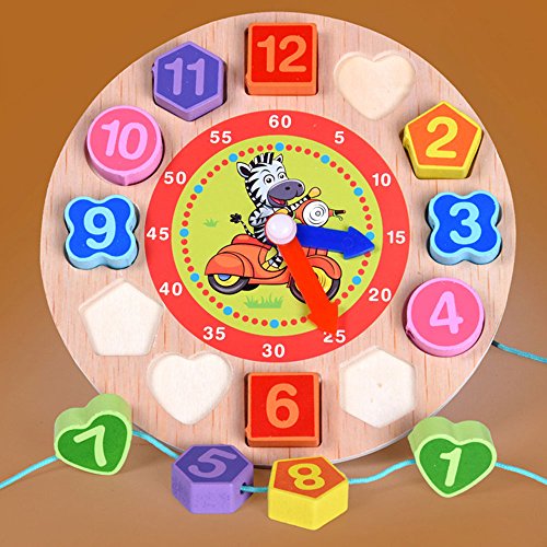 木製 12数字 カラフルなパズルデジタル 幾何学時計 赤ちゃん教育的なレンガ 赤ちゃんおもちゃ 出産ギフト ゼブラ