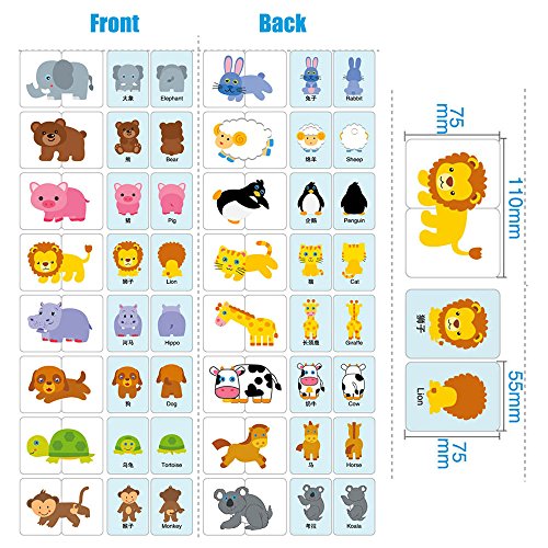 前面のカードは、英語文字、単語の選択はシンプルであり、読みやすいが標準ですが、動物の表示カード対応の背面に接続し、輸送、などの自然生命パターンが用意されています。