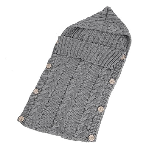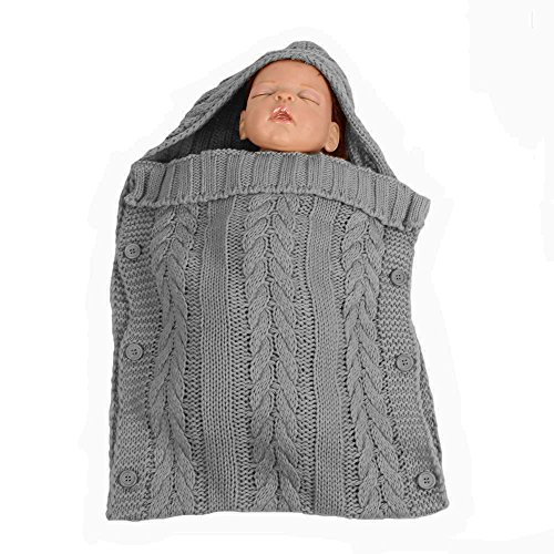 ベビー ニットおくるみ 赤ちゃん 柔らかい柔らかい肌触り 手編み感 ブランケット 出産祝い フード付きラップ 暖かい寝袋 ライトグレー