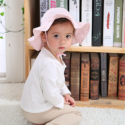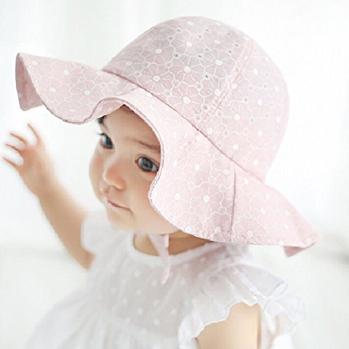 赤ちゃん着 日光予防帽子 乳児着帽子 花刺繍 コットン キャップ ピンク