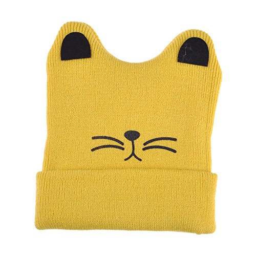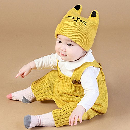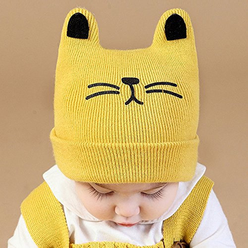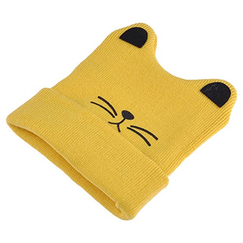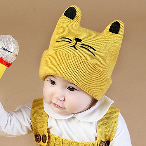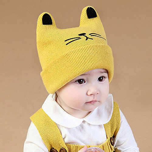 可愛い耳付き帽子 赤ちゃん幼児着 冬の暖かい ニットのかぎ針編みの帽子 猫の耳 ビーニーキャップ 黄色い