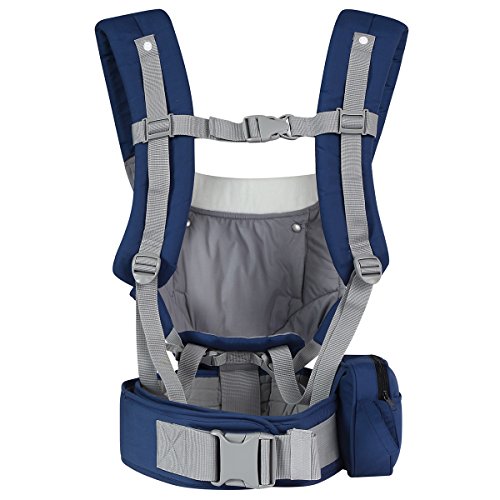 抱っこ紐 Mobesy ベビーキャリア 抱っこひも おんぶ 横抱き 新生児から3歳まで 4WAYタイプ 着脱式 腰ベルト ウエストバッグ 付き JA8908 (ブルー)