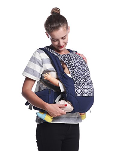 抱っこ紐 Mobesy ベビーキャリア 抱っこひも おんぶ 横抱き 新生児から3歳まで 4WAYタイプ 着脱式 腰ベルト ウエストバッグ 付き JA8908 (ネービー)