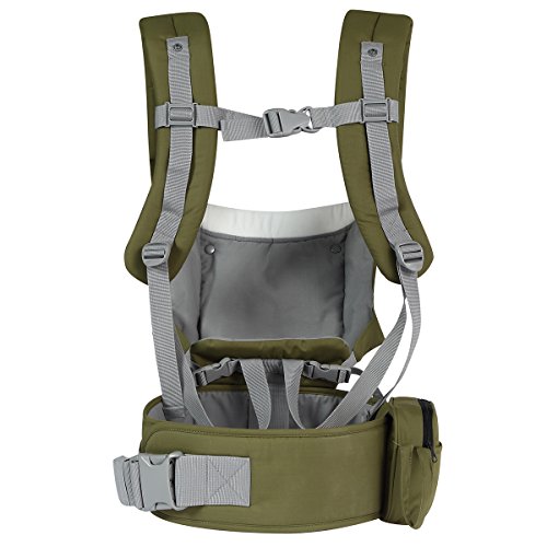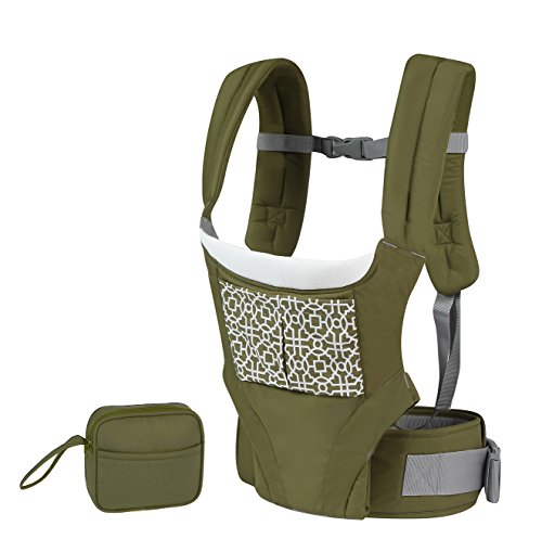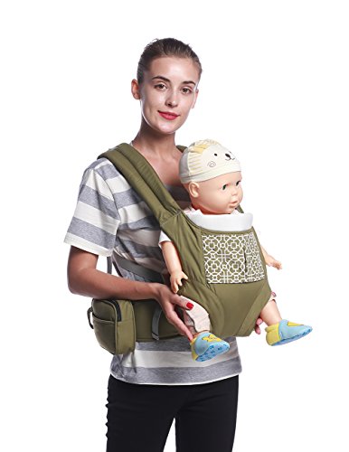 抱っこ紐 Mobesy ベビーキャリア 抱っこひも おんぶ 横抱き 新生児から3歳まで 4WAYタイプ 着脱式 腰ベルト ウエストバッグ 付き JA8908 (グリーン)