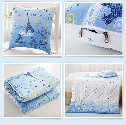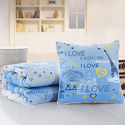 mochohomeポリエステルオールインワン折りたたみ旅行スロー枕within a Blanket – I Love Paris Throw Pillow: 16" x 16" & Blanket: 47" x 63" ブルー Pillow-Blanket-1-120-LoveParis